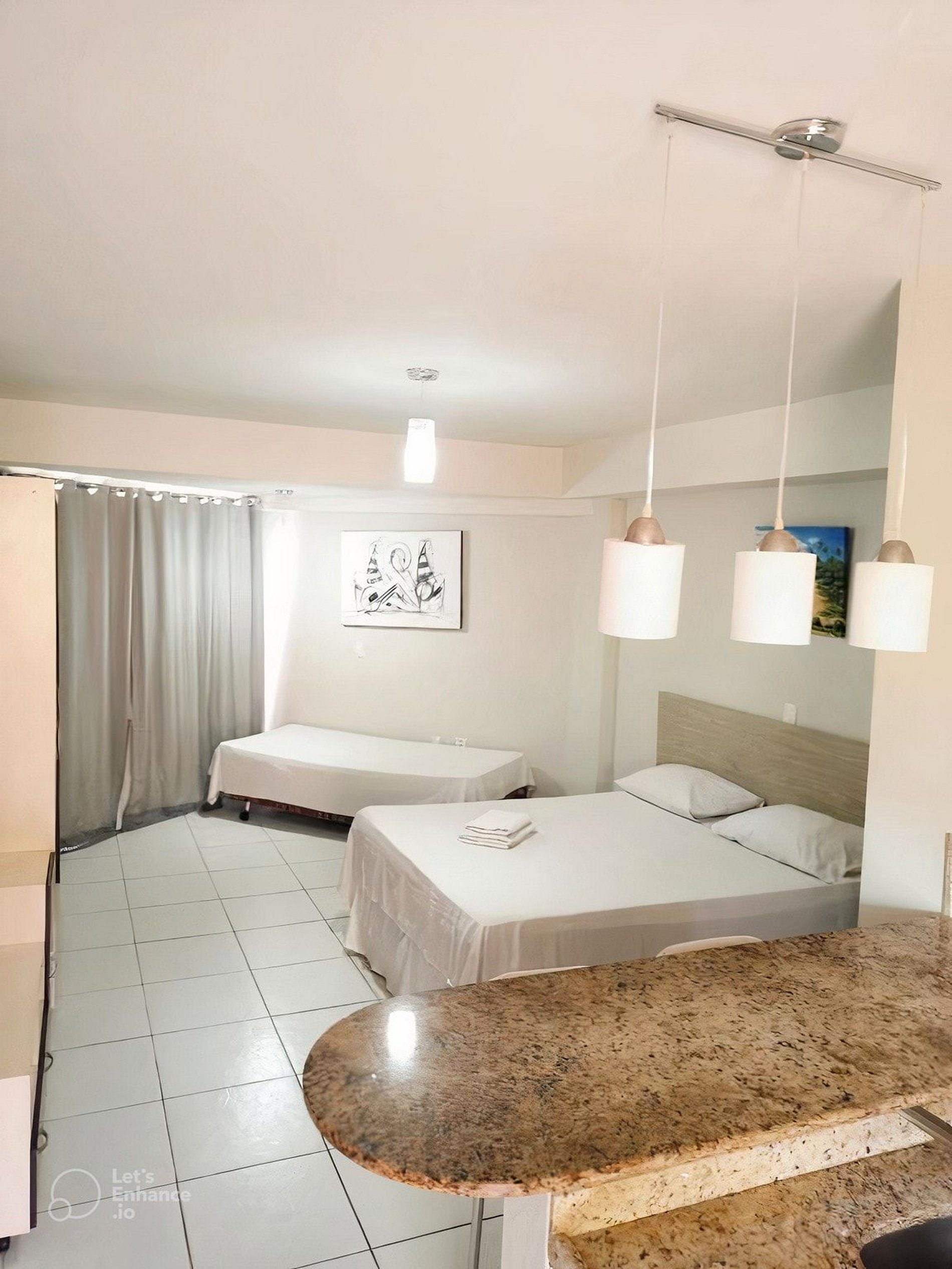 Ficamos à 200m da Praia de Ponta Negra ao lado dos melhores restaurantes, bares de Natal. Localização privilegiada em frente a principal praça de alimentação com mais de 30 food trucks e música ao vivo. Piscina com vista panorâmica do mar. Apartamento com frigobar, cafeteira, liquidificador, ferro de passar roupa, tv, ar condicionado, uma cama de casal e uma cama de solteiro. Recepção 24h, garagem e restaurante que serve um maravilhoso café da manhã ( pago diretamente no restaurante).